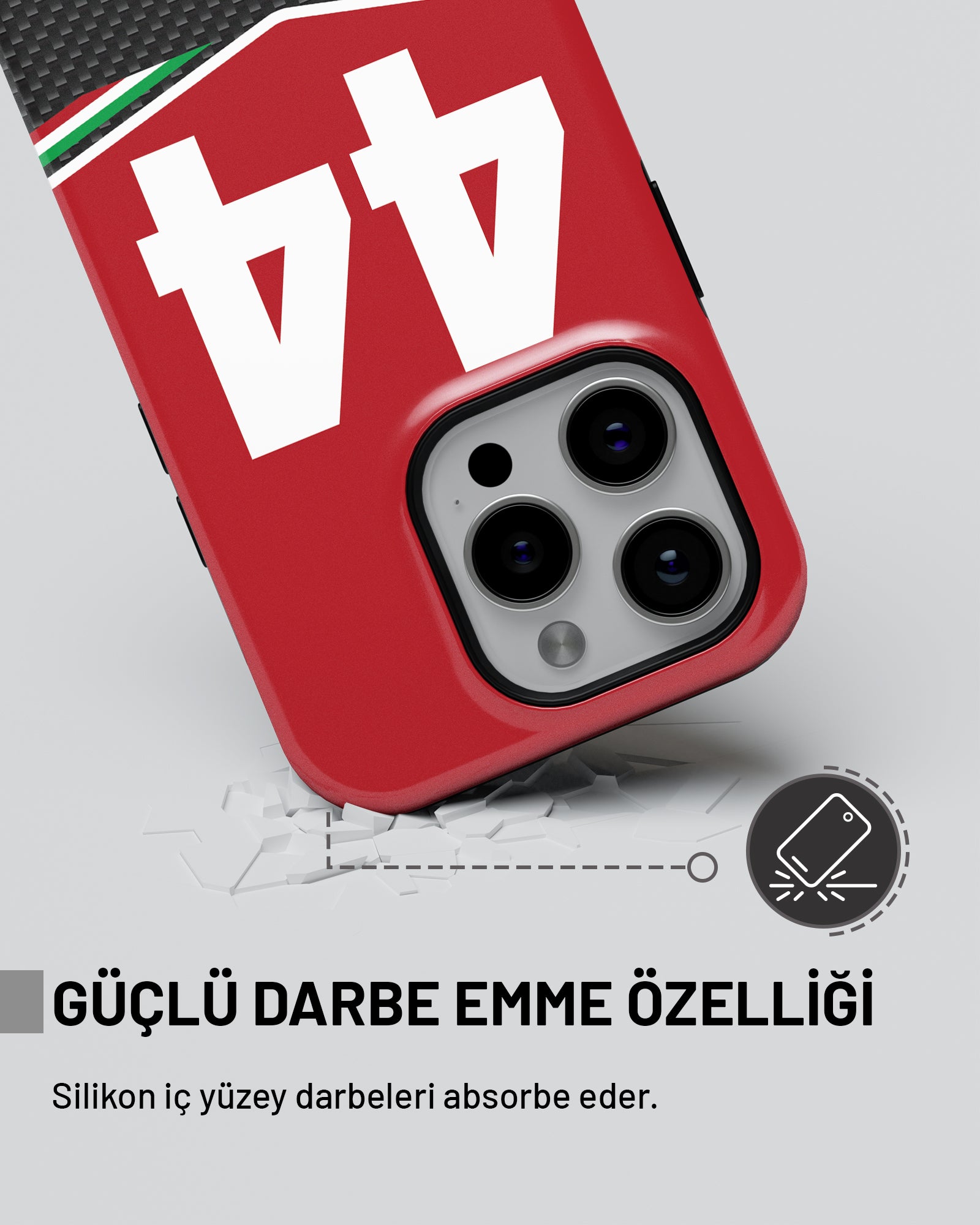 Darbe emici çift katmanlı yapısı, çizilmelere ve düşmelere karşı üstün koruma sunar.